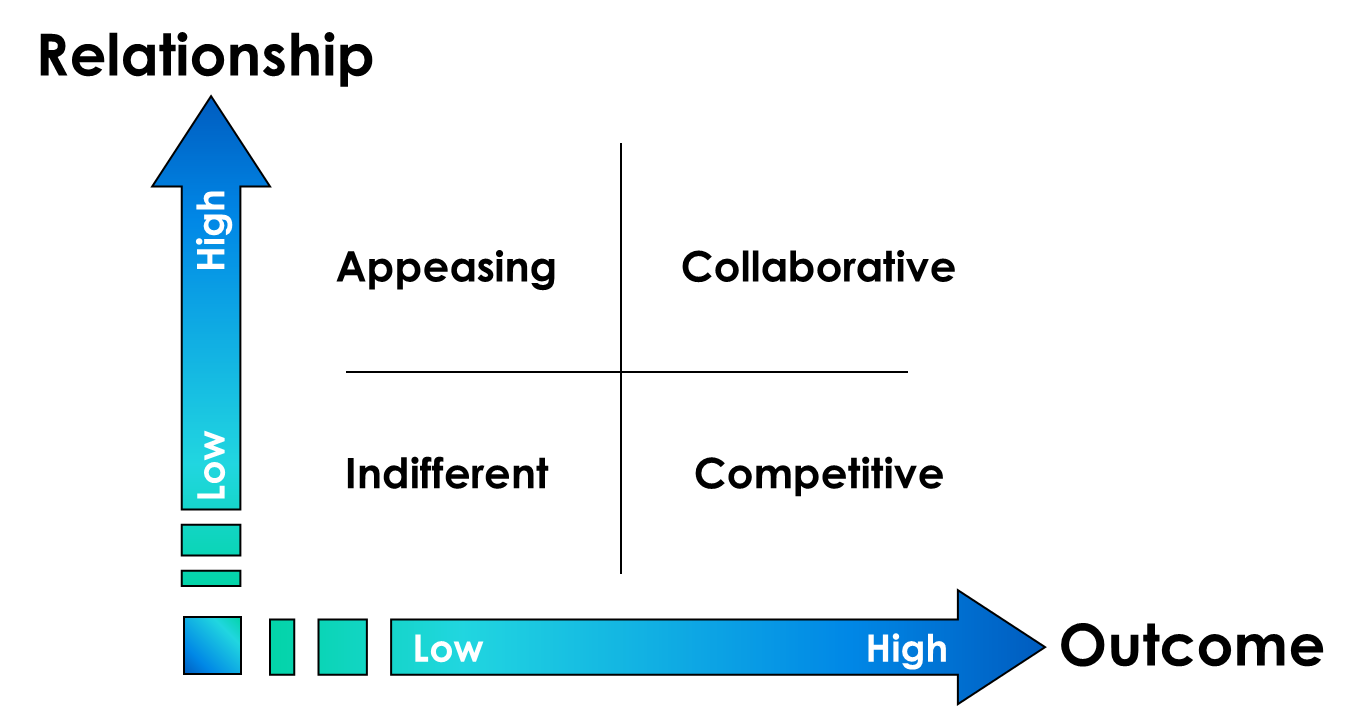 Collaborative – this is the ideal quadrant for a CAM. Having an equal focus on both aspects, and acknowledging that your time is valuable. You are happy to give your partner what they need, but you expect them to give you what you need.