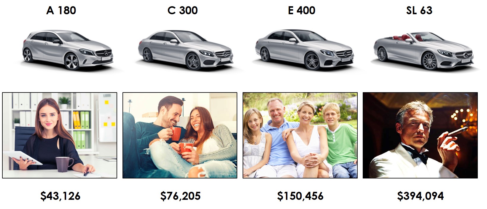 Now we can see that even someone with not even the faintest knowledge of cars is able to identify how to position the various Mercedes models.